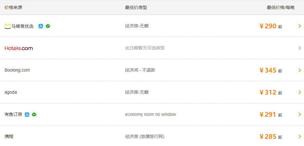 大家都知道国内有许多的订房软件,比如飞猪,携程,Booking等,实在是太多选择了,经常同一家酒店在不同的平台上价格也是参差不齐,如果每个平台都去看,会浪费你大巴的时间。所以小编经验所得,用马蜂窝挑选酒店是最好的选择好,因为在马蜂窝平台上,当你选择一家酒店时,马蜂窝会列举出自己平台以及其他平台上的房型最低价格供你参考选择,可以省下你很多时间。当然值得注意的是,不要草率的决定哦,因为泰国很多酒店是不支持退款的。