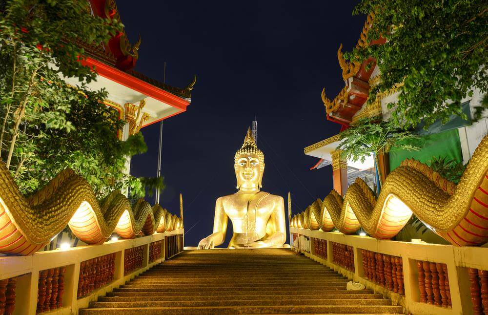 所谓的”大佛”当然名副其实,它是芭提雅最大的大佛,高18米。位于海拔近100米的地方,从它的位置上可以俯瞰芭提雅和中天海滩。寺庙建筑群围绕着高度精细的金色坐佛,耳边缠绕的钟声和鼎旺香火。这里不仅仅是游芭提雅的旅游景点,还是当地人前往祈福的热门寺庙。